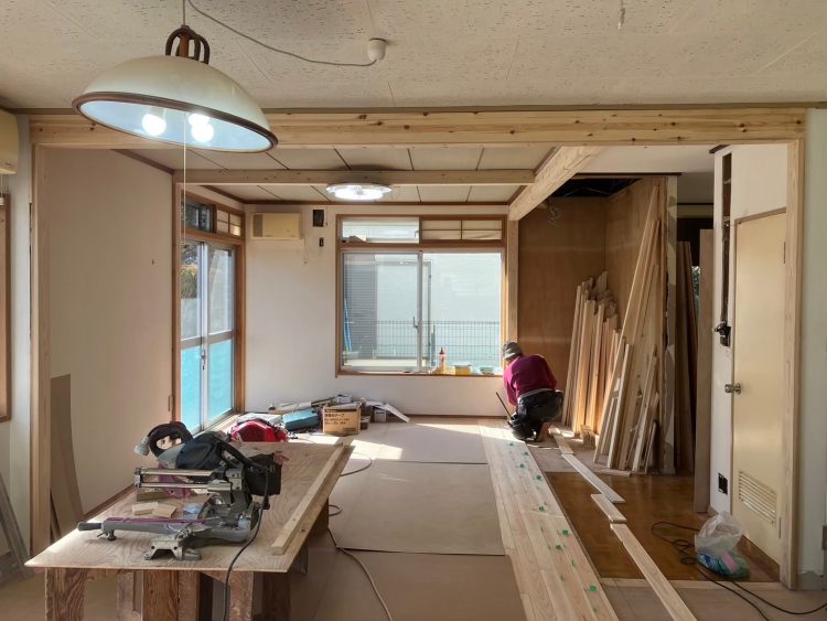 解体した壁にニッチ棚を作り大容量の収納が誕生!