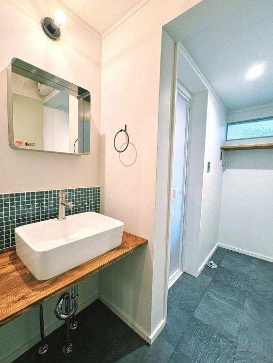 冷蔵庫やストック品がスッキリと隠せるパントリーも設置しました。